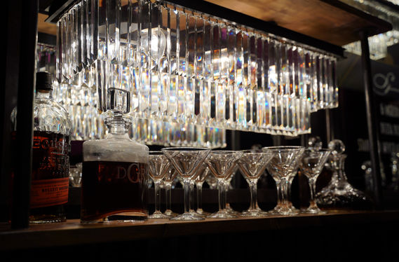 Optional bar back shelving made from steel pipe and matching dark wood shelving. 3 sections available to span the total length of the bar (12 ft).